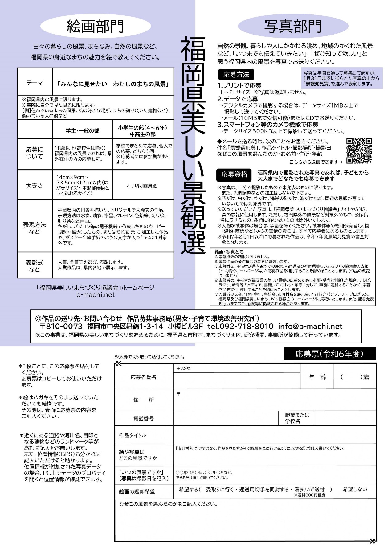 福岡県美しい景観選令和6年度作品募集チラシ表 福岡県美しい景観選令和6年度作品募集チラシ裏