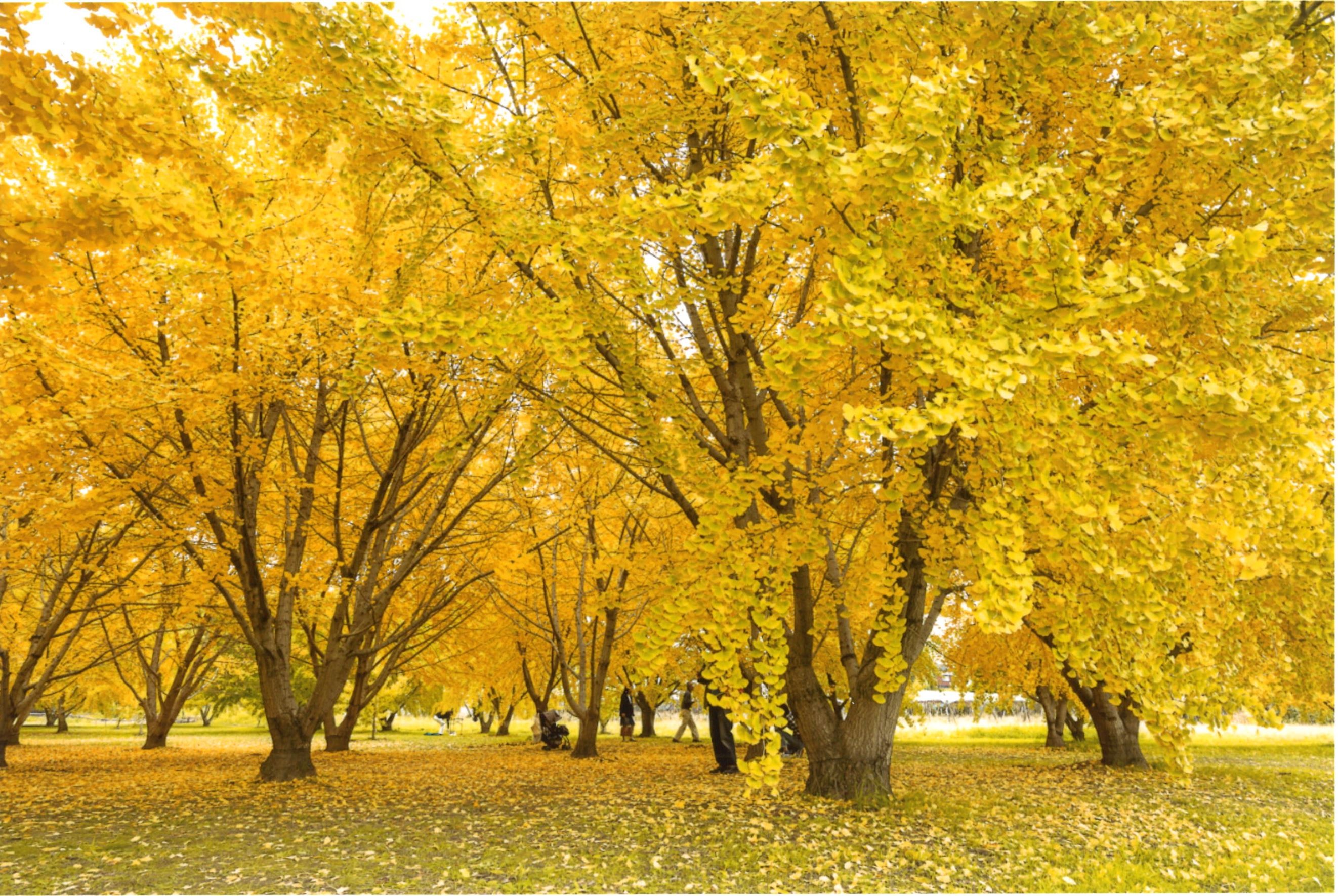 毎年11月中旬~下旬になると、太原(たいばる)地区にあるイチョウ並木が美しく色づき、あたり一面黄金色に染まる圧巻の景色を一目見ようとたくさんの人が訪れます。そのイチョウ並木と落ち葉による美しい黄金の絨毯は写真映え抜群です。