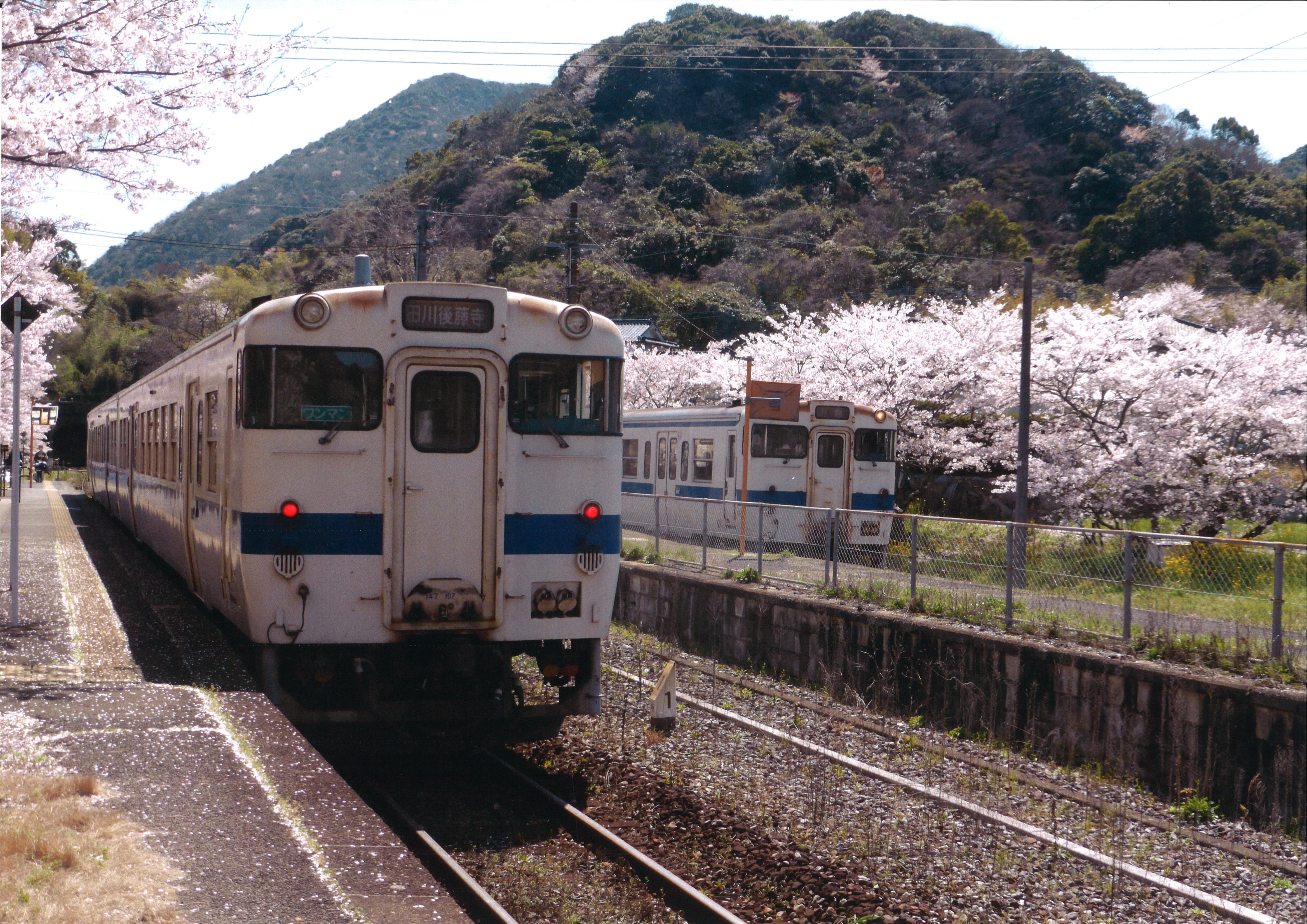 採銅所駅舎は、香春町の有形文化財に指定されています。洋風の木造駅舎は、全国の駅の中でもとても人気のある駅舎です。春は、花壇に咲く花や駅ホーム周辺に咲く野花と桜の花がとてもきれいです。
