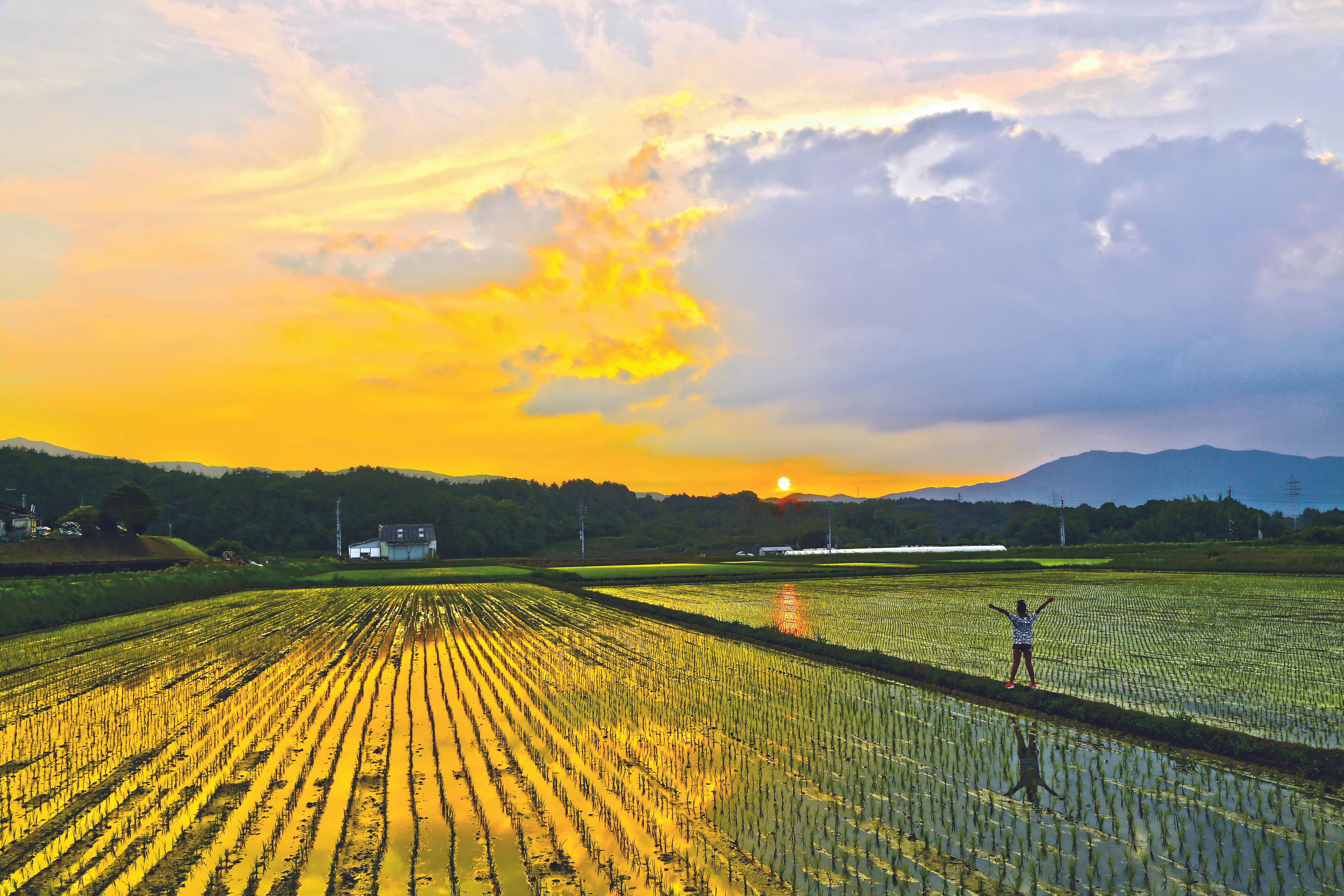 桂川町の土師地区にある田んぼみちから眺める風景です。周辺には土師窯や、町の宿泊施設である、ゆのうら体験の杜(キャンプサイト等)があり、緑豊かな場所です。