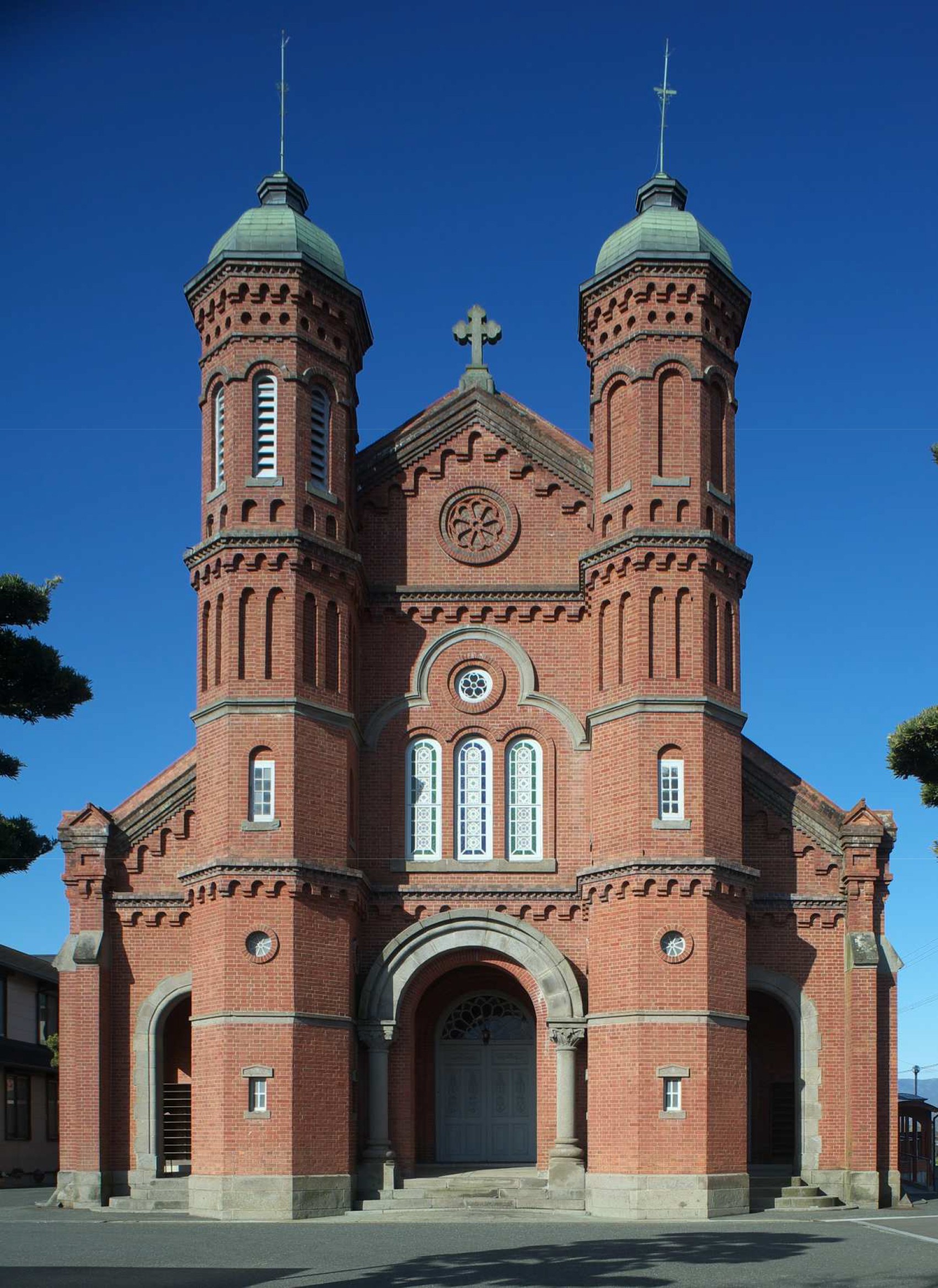 今村天主堂は江戸時代に隠れキリシタンとして信仰を守った人々が多く暮らした大刀洗町の今地区にあり、国内でも珍しいレンガ造りの教会で1913年(大正2年)に建設され、築100年を越えました。教会建築の巨匠、鉄川与助の最高傑作とも言われており、双塔のレンガ造りの教会は日本では非常に珍しい建築物として、平成27年には国の重要文化財に指定されました。現在は多くの方が将来繋げるために守り続ける活動を行っています。