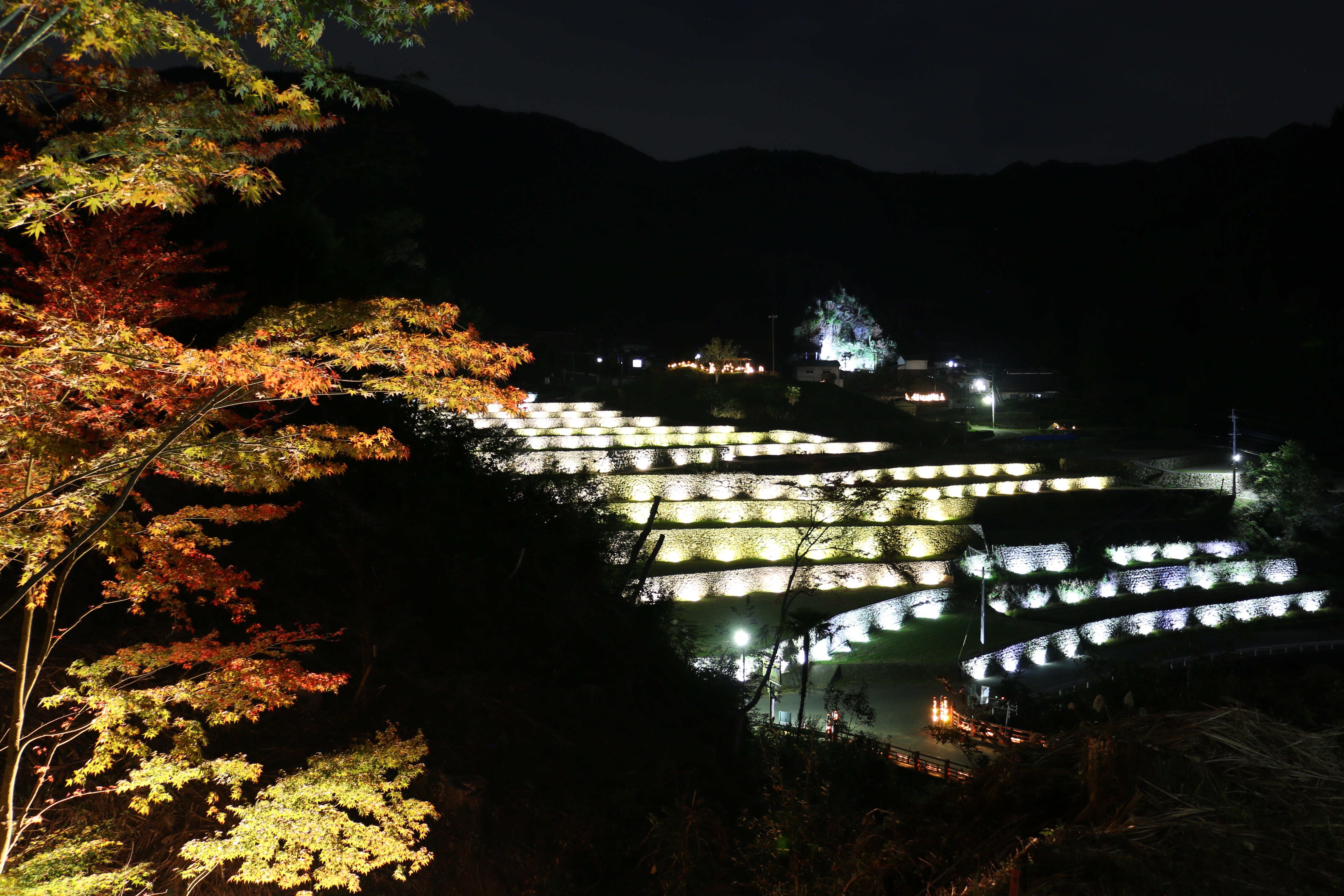 歴史がある石積みの棚田は、谷間のわずかな空間を農地として上手に利用するための、昔の人の知恵と努力の結晶です。5月末の田植の後は、棚田に張った水に夕日が反射し 幻想的な風景がみられます。6月のホタル、8月の瑞々しい稲穂が風にたなびく姿、9月の黄金色の棚田、雪に覆われた静かな棚田など、1年を通して楽しむことができます。